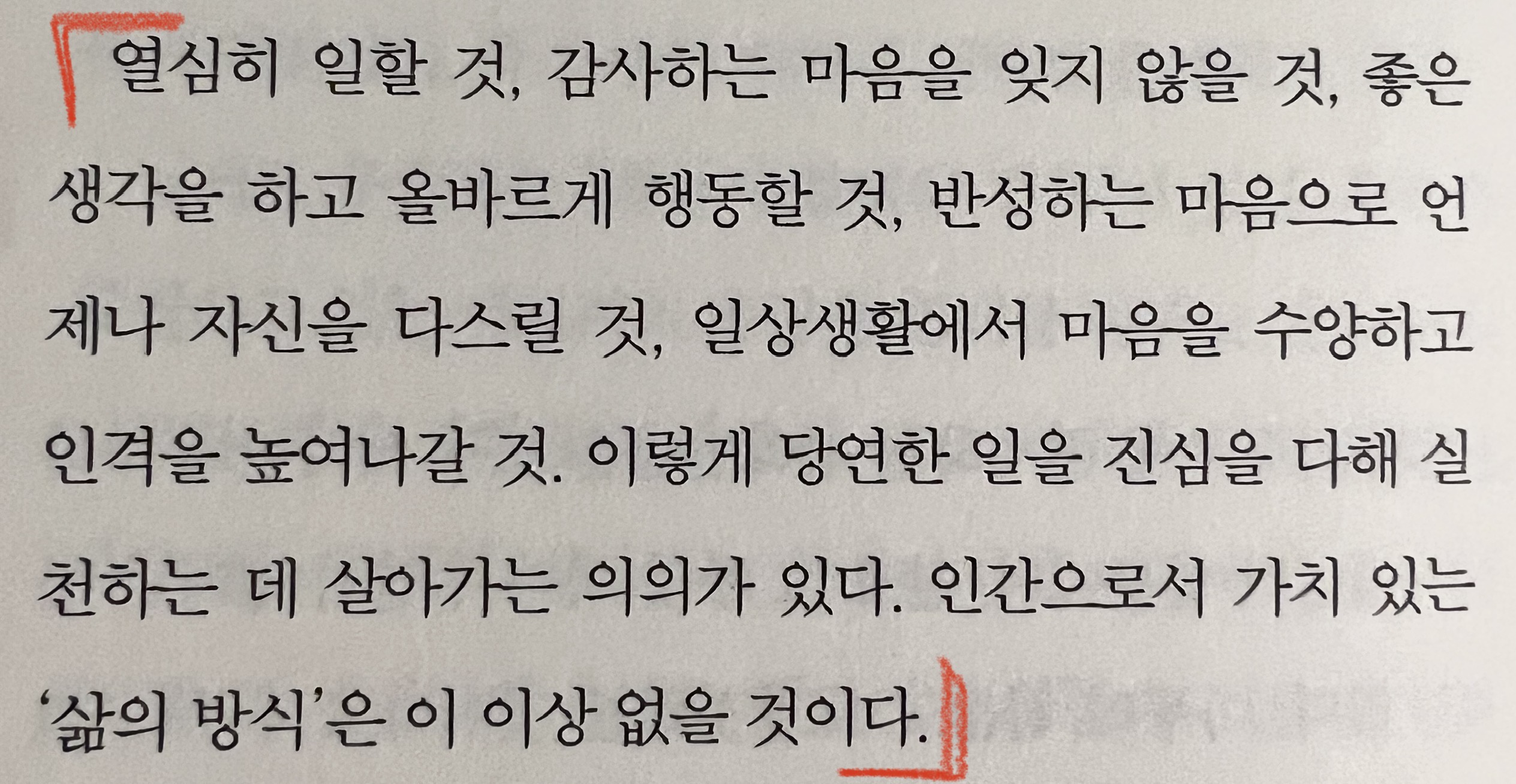 저자가 강조하는 '인간으로서 가치 있는 삶의 방식' 입니다.