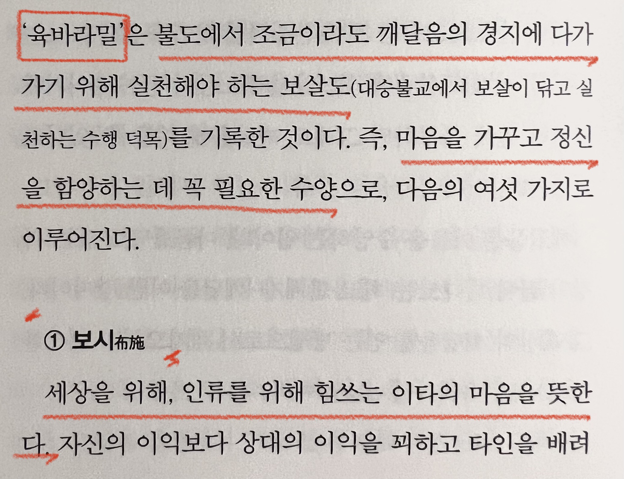 "'육바라밀'은 불도에서 조금이라도 깨달음의 경지에 다가가기 위해 실천해야 하는 보살도를 기록한 것이다.