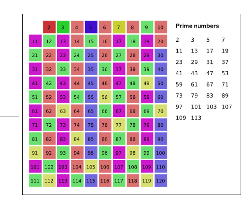 5) 11^2 > 120 > 10^2 이므로 11보다 작은 수들의 배수까지만 찾아서 제거한다. ( 120보다 작거나 같은 수 까지 )